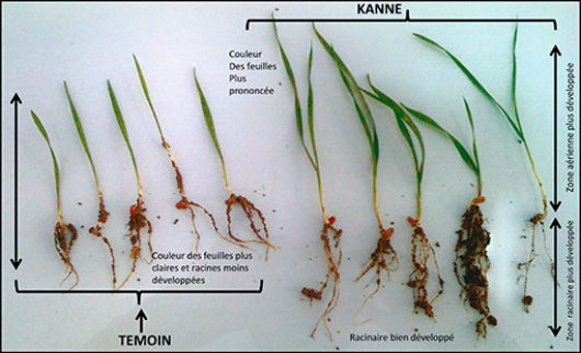 On augmente la capacité du germe à s'exprimer par le biais du développement racinaire en favorisant le passage du phosphore, potassium, magnésium et des oligo-éléments pour un impact positif sur la productivité des plantes.